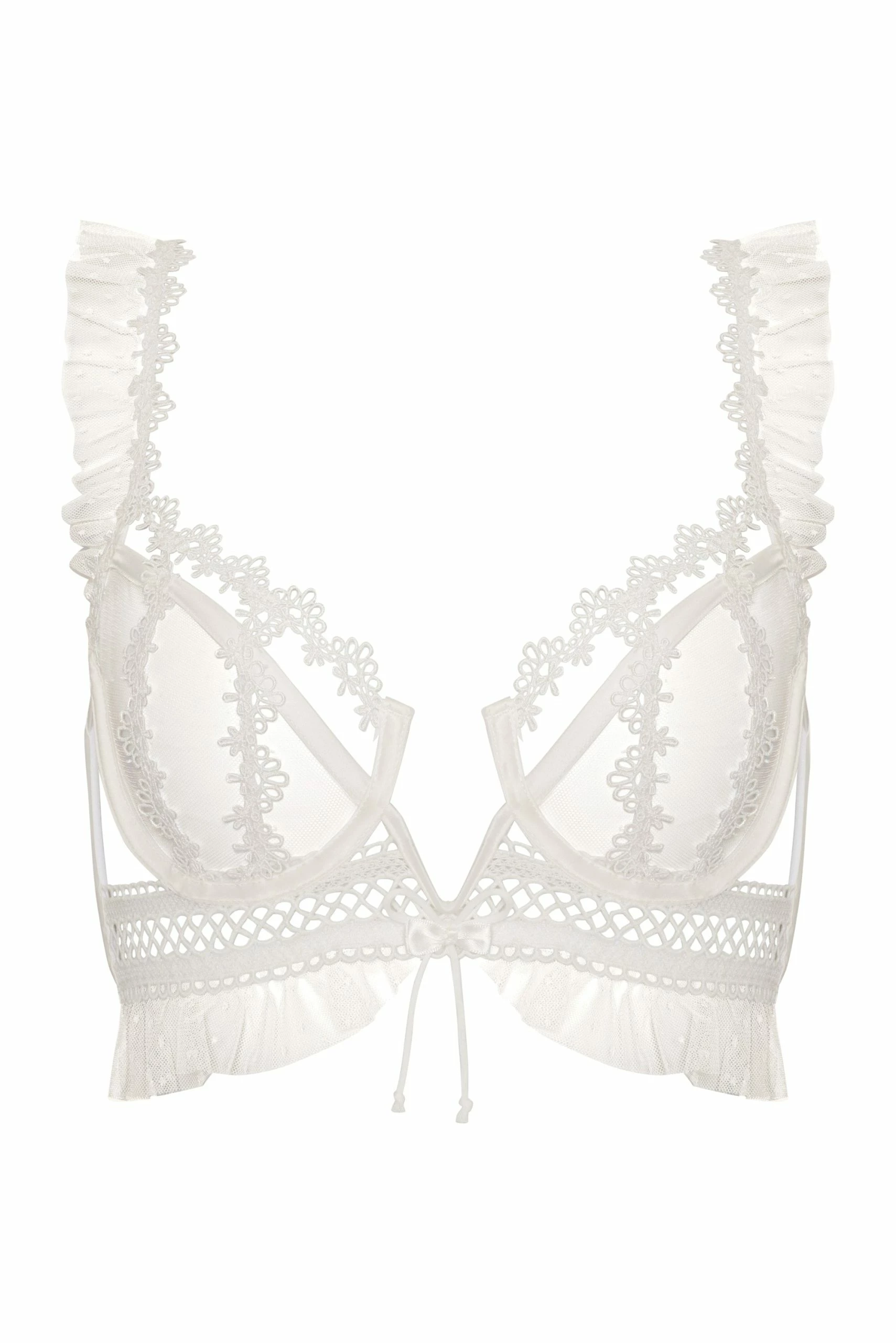 For your big day (or night) and whenever you’re feeling fancy, this lacy, pure-white piece is a showstopper. Finished with specialty trims, skinny ties, and daisy adjuster rings.