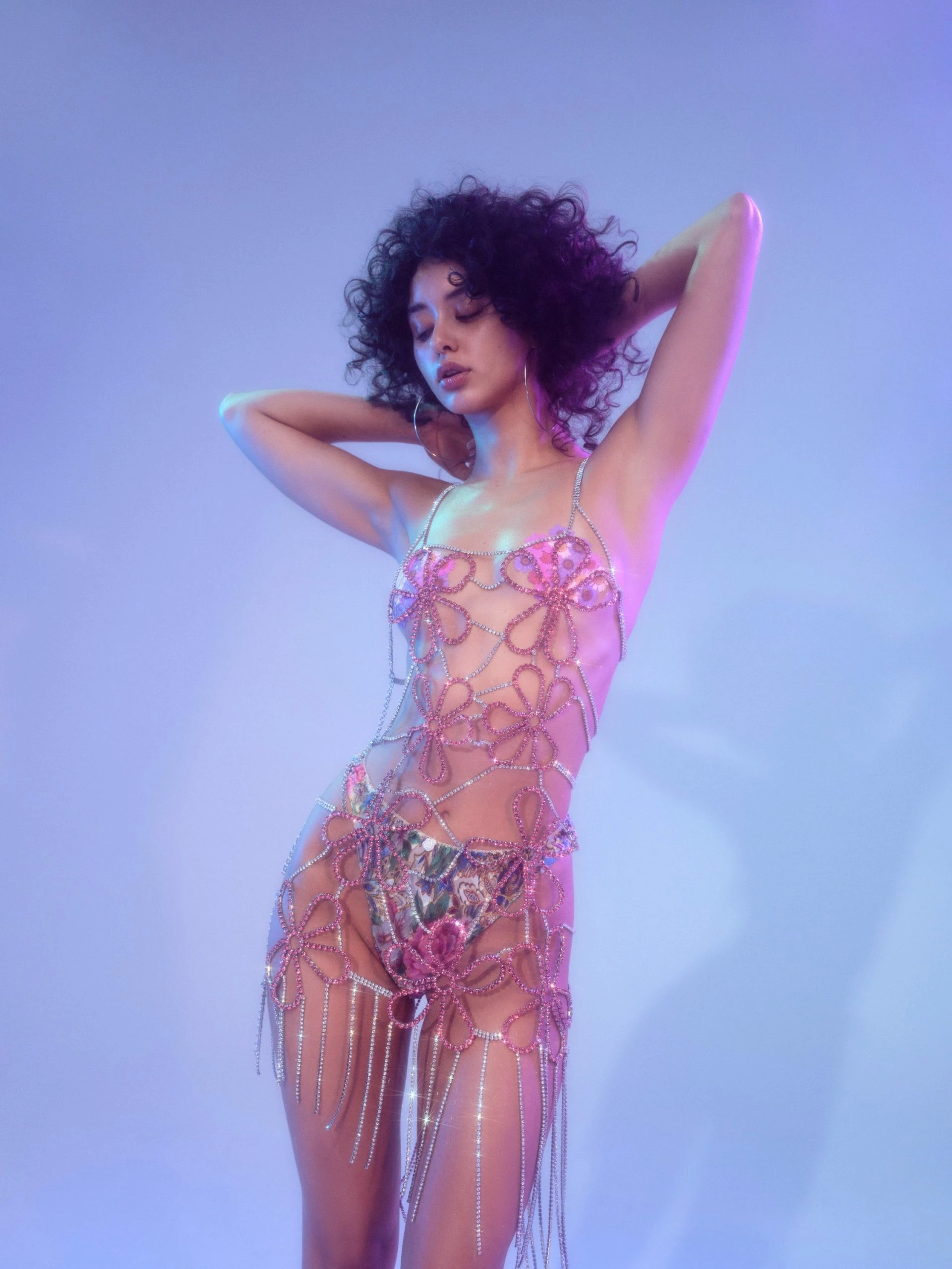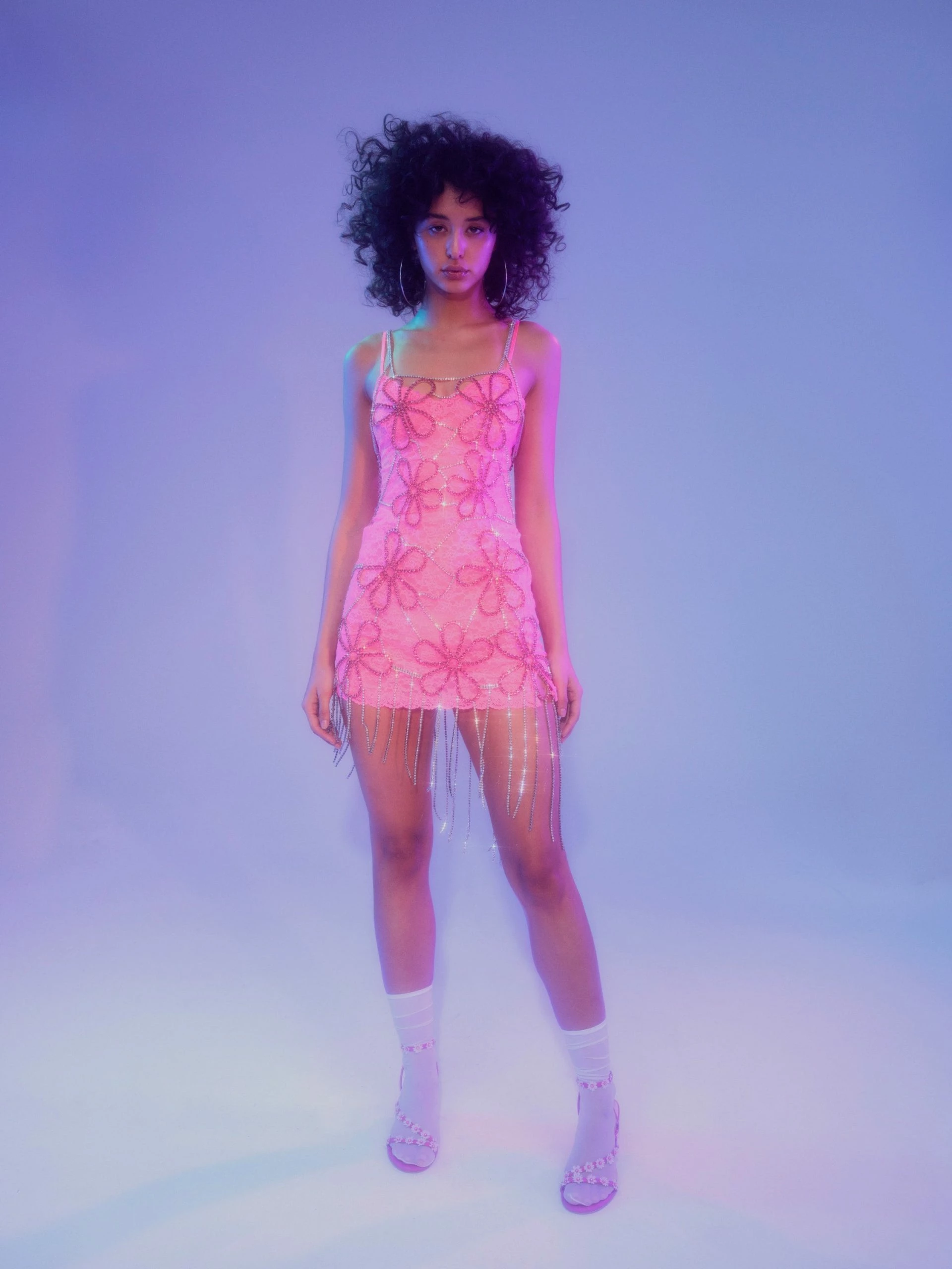 Floral Rhinestone Fringe Dress