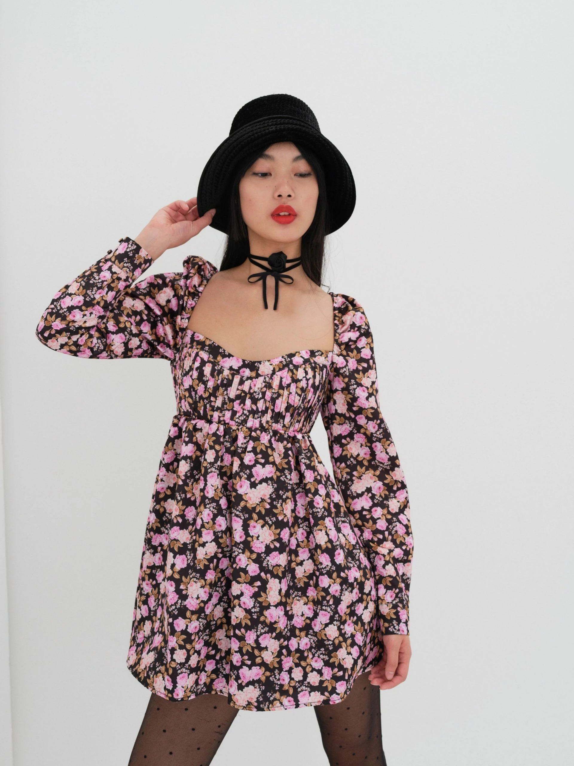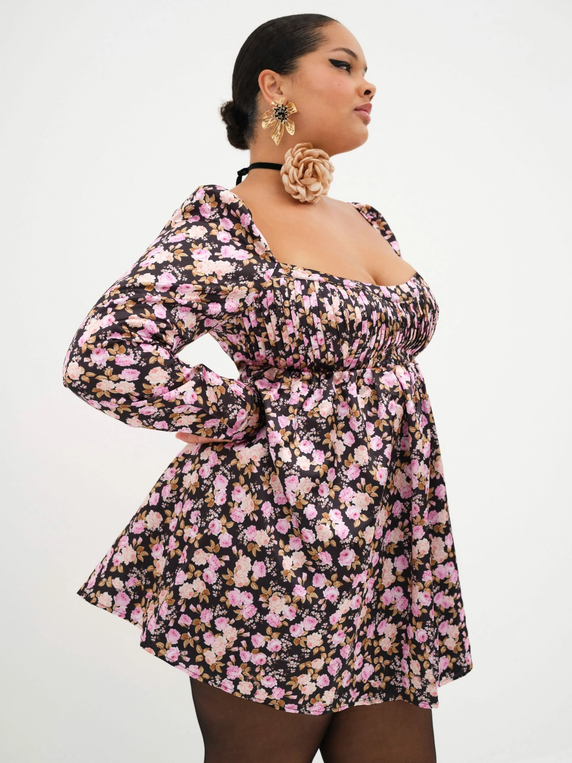 Give off main character energy in a flirty frock with vintage-inspired flair. Featuring an allover cabbage rose print, sweetheart neckline, and pin-tucked details at the bodice.
