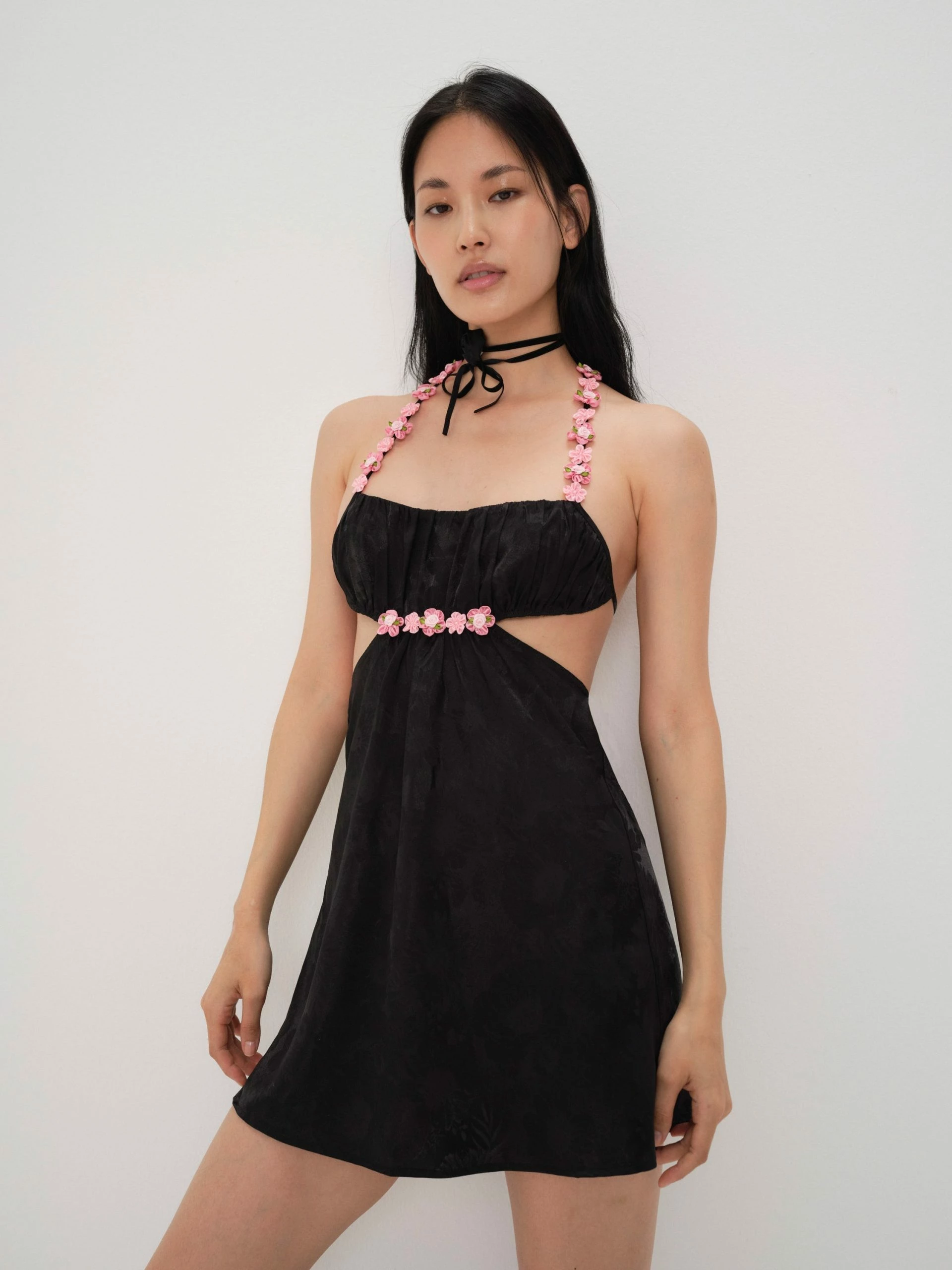 Make a statement with playful rose details and a subtle, contemporary black garden print for a sultry-yet-sweet piece.