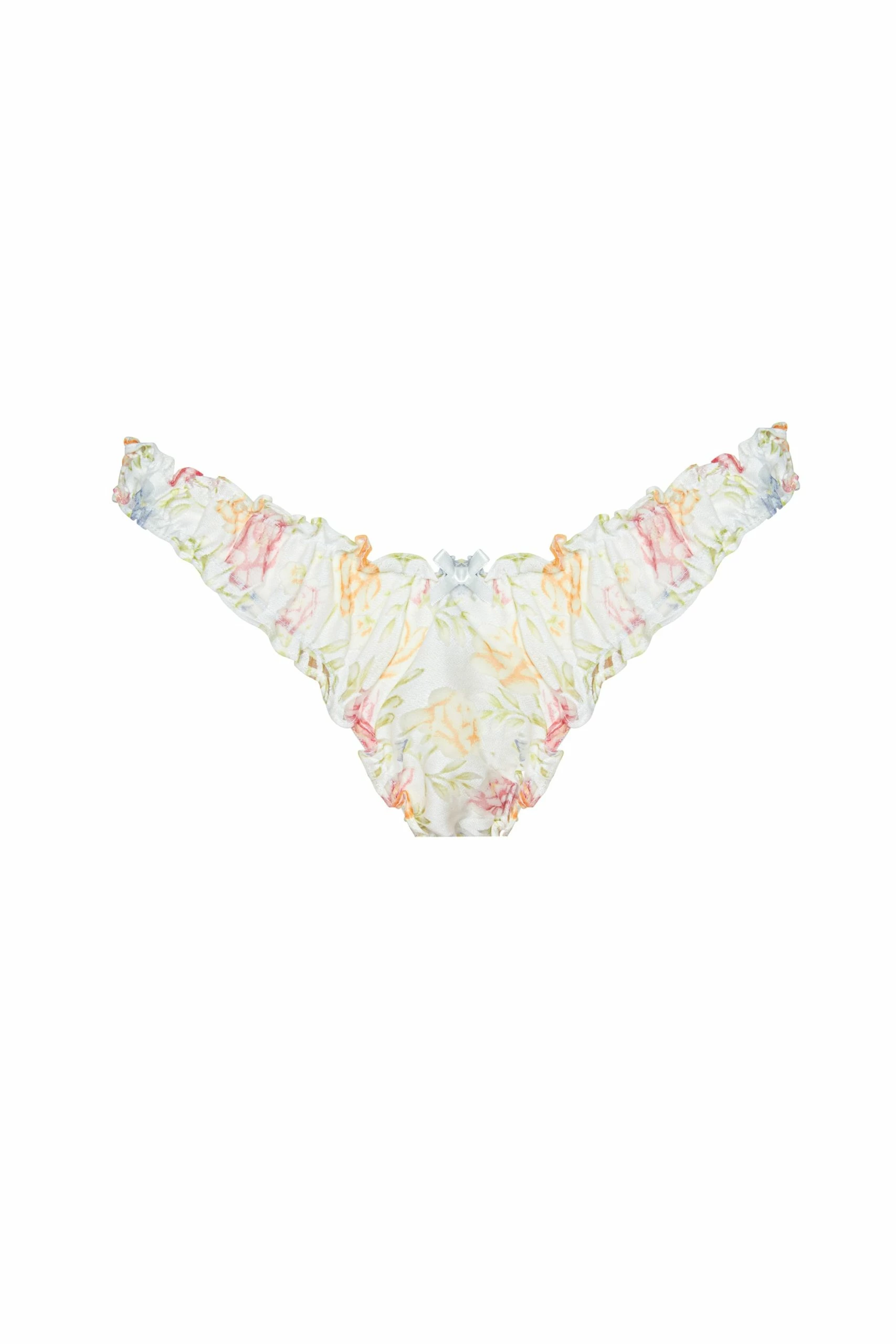 Not your garden variety floral underwear. This dreamy bikini brings the romance with a burnout rose pattern, ruffled details, and a cheeky cut in back. Pair with the matching Rosie bra.