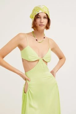 Have a heart and wear it, too. Fluorescent embroidery is enhanced with contrast satin taping and cutouts detail located on the sides of the bra cups, double adjustable shoulder straps, and glossy yellow hardware.